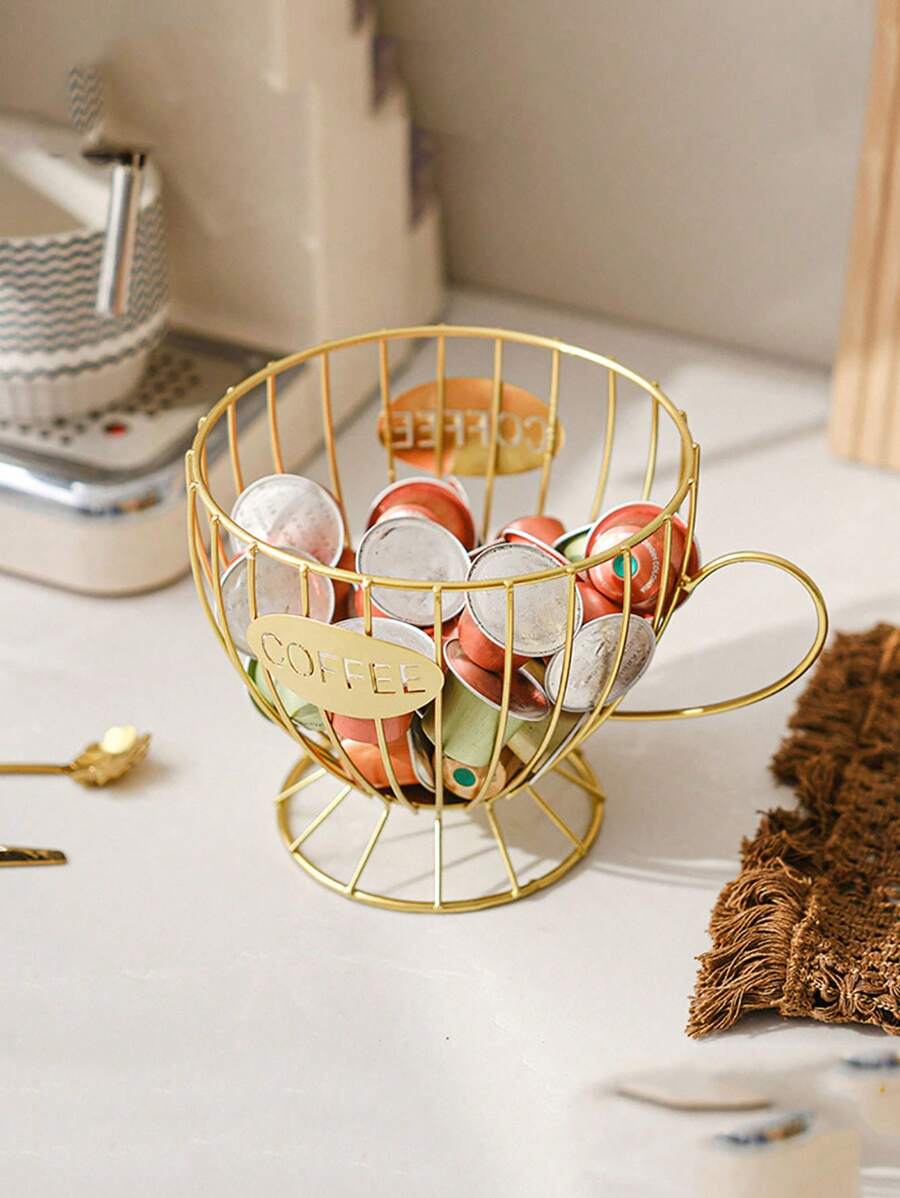 1 Nordic Style Light Luxury Snack Candy Storage Rack, Coffee Shop Dining Table Display Decoration Rack, Home Coffee Storage Rack, Metal Storage Basket, Office Dormitory Large Capacity Storage Basket, Open Decoration Piece