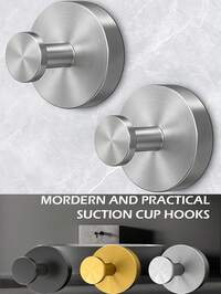 15lbs Capacity Stainless Steel Vacuum Suction Cup Bathroom Hooks, Waterproof & Rust-Proof, Suitable For Glass, Mirror, Tile Surfaces, For Storing Loofah, Bathrobe, Jacket, Etc. - Matte Black, Silver, Gold