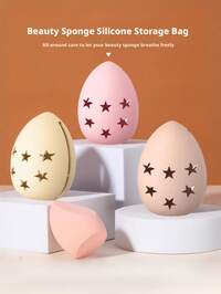 Makeup Sponge Holder, Double-Sided 5-Slot Ventilated Silicone Makeup Blender Protector, Makeup Brush Holder, Makeup Sponge Box, Travel Makeup Bag And Beauty Mixer Rack, Dust-Proof Makeup Bag, Suitable For All Sponges, Reusable, Portable Travel Makeup Brush Case - Khaki, Light Pink, Modern Minimalist Style