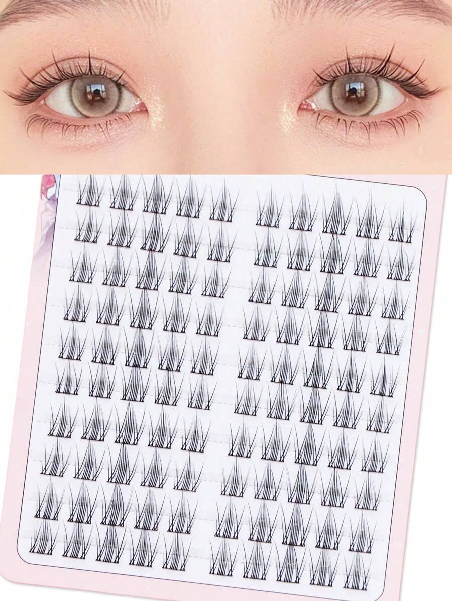 Elynique 100 Pcs C Curl Natural Cat Eyelashes DIY Lash Clusters Spread False Eyelashes- DIY Eyelash Extension Anime Lashes, Individual False Lash Clusters With 0.05mm Ultra-Thin Invisible Lash Band