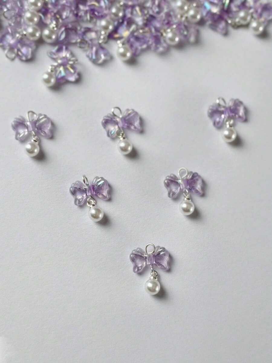 10pcs New Plated Colorful Transparent Small Bowknot Bow Pendant DIY Handmade Phone Strap Chain Beads Earring Accessories