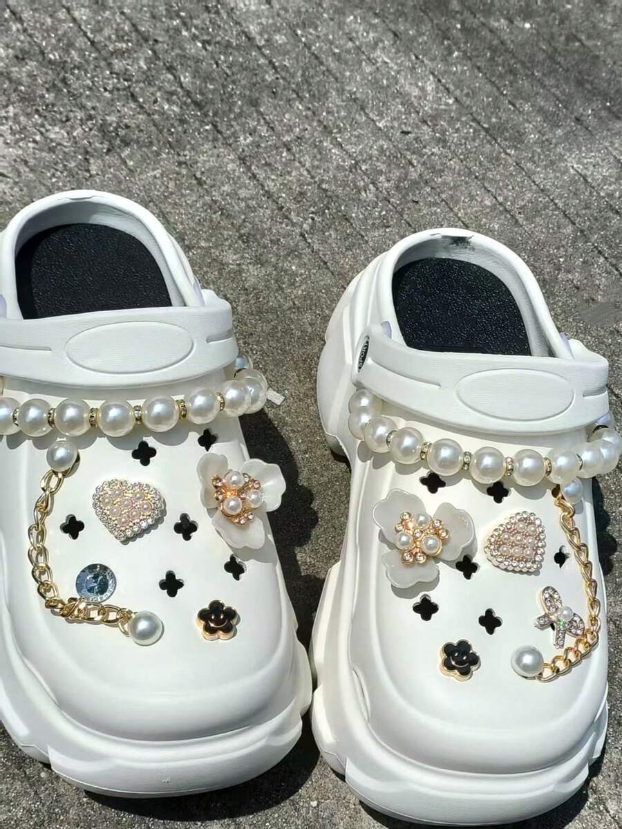 12pcs Shoe Charm/Shoe Accessories/Charms Pearl Chain Flower Charms For Shoes/Charms Suitable For Clogs/Beach Bags/Beach Shoes And Halloween Gifts/Christmas Gifts/Other Holiday Gifts