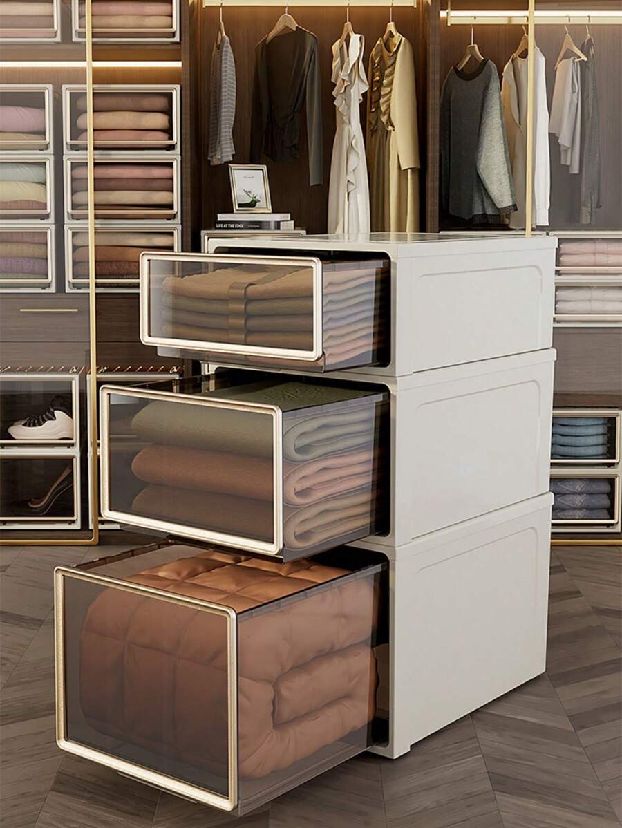 1pc 5/10/16/28/36/37/46/47L Large Capacity Drawer Storage Box, Closet Organizer/Bedroom Closet/Portable Closet, Plastic Transparent Storage Cabinet, Clothes And Underwear Large Capacity Storage Box, Stackable Storage Box High Hardness Storage Box