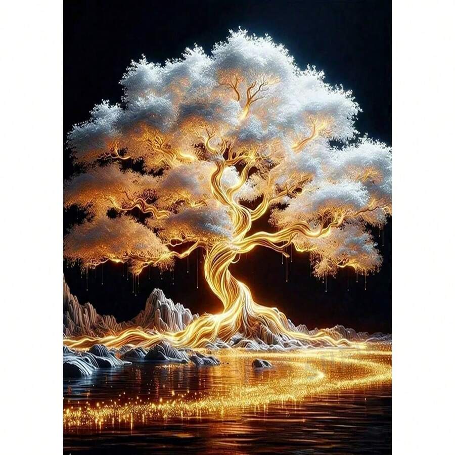1pc 5D DIY Diamond Painting - "Fantasy Glowing Tree Style: A Tree Emitting Warm Golden Light All Over" - Large Size Frameless Mosaic Full Diamond Round Acrylic Diamond Art DIY Diamond Painting Kit, Suitable For Home And Office Desktop Decoration, Tabletop Decoration And Wall Decoration, Living Room, Bedroom, Study Room Ideal Home Decor Gift, Suitable For Adult Beginners And Craft Enthusiasts, Handmade Gift Ideas, Perfect Gift For Family Gatherings, Birthday Parties And Various Festivals
