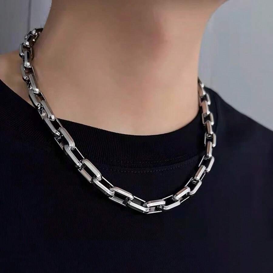1pc Fashionable & Minimalist Thick Chain Necklace For Men, Industrial & Vintage Style Thick Cuban Link Necklace, Unisex Titanium Steel Choker Necklace, Length 50cm, Width 0.9cm