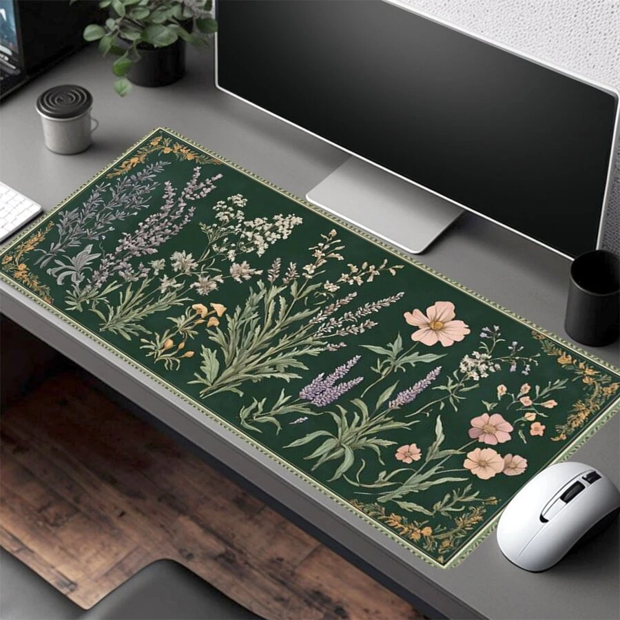 1pc Flowers Mouse Pad Vintage Art Desk Mat 35.4x15.7 Inch Desk Accessories Rubber Base With Stitched Edge Non-Slip Keyboard Pad For Office Home Computer As Gifts For Men Women Friends Birthdays Back To School Gaming Mouse Pad
