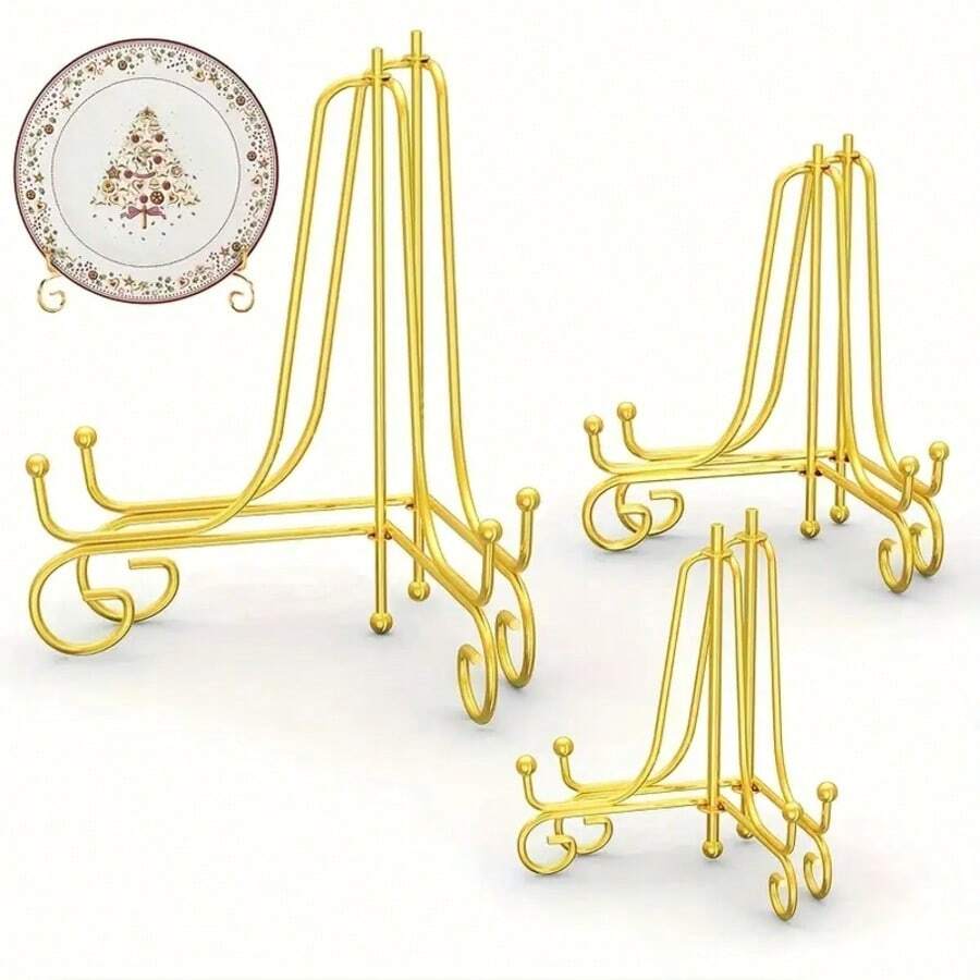 1pc Gold Iron Display Stand, Gold Iron Easel Plate Display Photo Holder Stand, Displays Picture Frames, Cookbooks, Decorative Plates, Tablets And Art