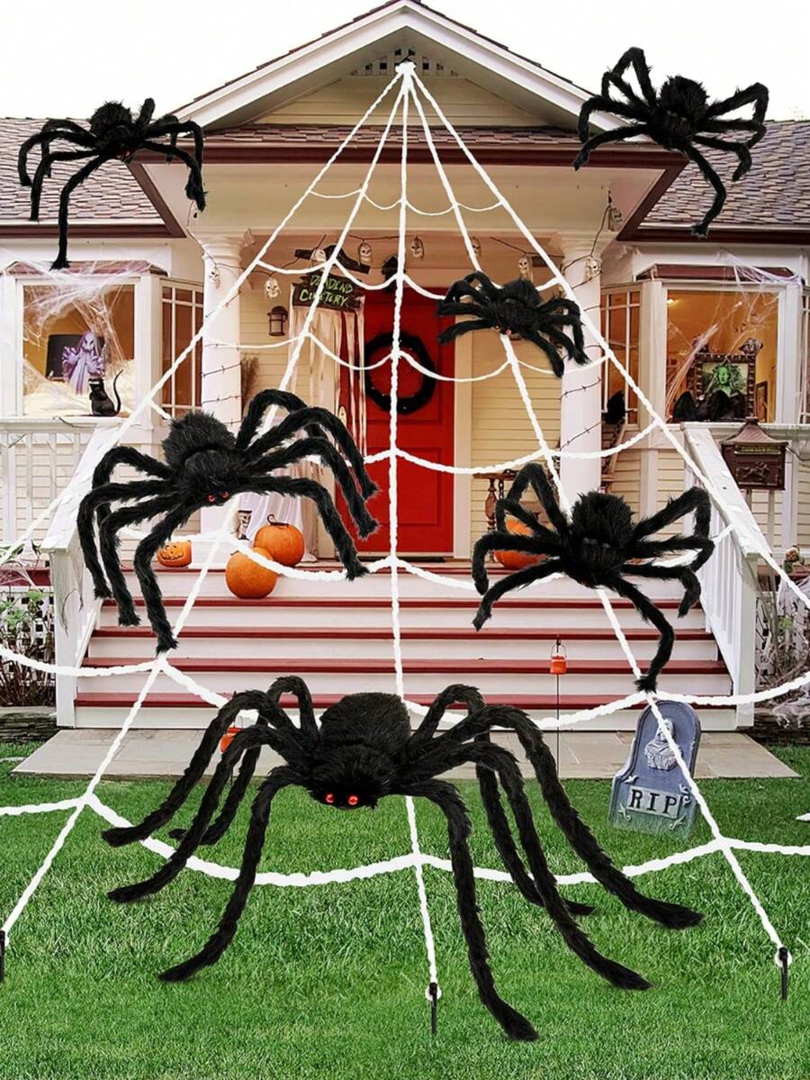1pc Halloween Giant Spider, 6.56ft Large Foldable Simulated Furry Spider For Wall Decoration, Outdoor Garden Decoration, Halloween Party Decoration, Home Decoration Supplies (Multiple Sizes). Halloween Decor Fall Decor Room Decor