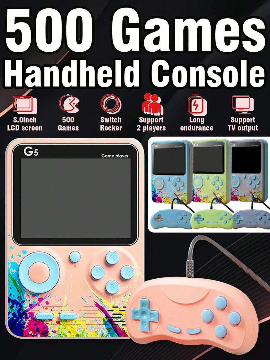 1pc Handheld Game Console Mini Nostalgic Old-Fashioned Rechargeable Cube With 500 Built-In Classic Games Adult Teenager Dormitory Leisure Decompression Toys 3-Inch Color Screen Support Connection To TV Double-Player Retro Colorful Color Matching Birthday Holiday Gift For Men Husband And Boyfriend