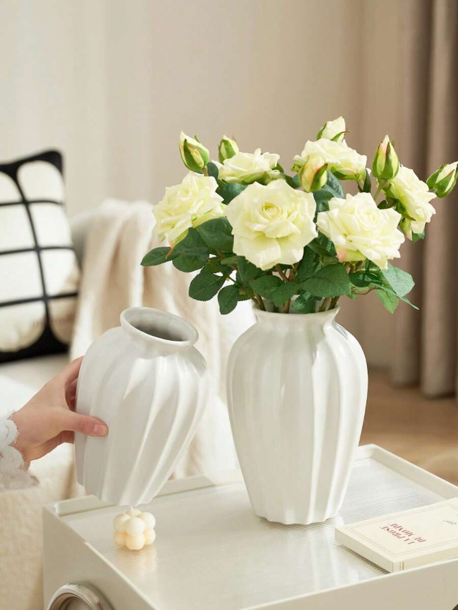 1pc Handmade Nordic-Style Ceramic Vase Embodies Modern Nordic And Bohemian Aesthetics, Showcasing Minimalist Beauty And Bringing A Luxurious Atmosphere To Home Decor. It's An Excellent Decorative Piece, Perfect For Placement In Living Rooms, Bedrooms, Bathrooms, And Other Spaces. It Can Also Be Used To Grow Hydroponic Plants Or Display Dried/Fresh Flowers, Making It An Ideal Gift For Festivals, Weddings, And Other Celebrations.
