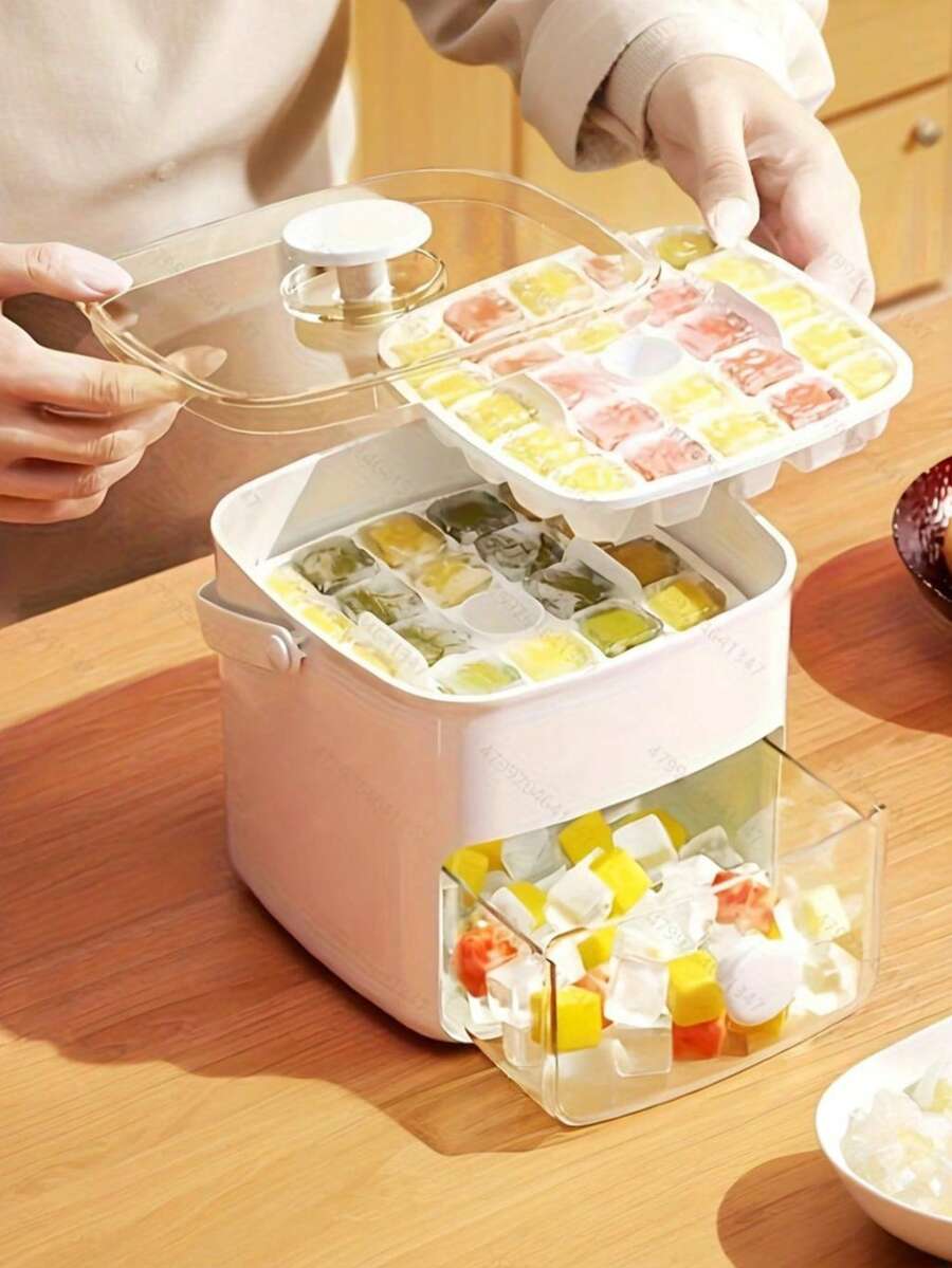 1pc Ice Cube Tray With Cover And Storage Box, Ice Cube Tray For Ice Chest, Ice Cube Tray, Ice Mold, Ice Maker Container, Drink Holder, (With 2 Trays) And Ice Bucket, Tongs