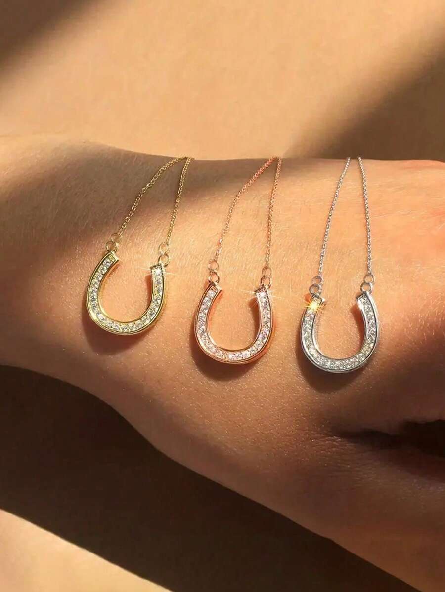 1pc Minimalist Horseshoe Zirconia Pendant Necklace, Elegant & Fashionable Everyday Wear Necklace For Women