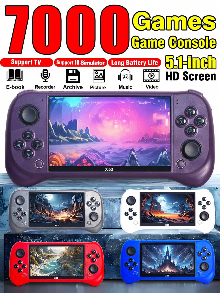 1pc Multi-Functional Game Handheld Built-In 7000 Retro Single-Player Games 10 Emulators GBA/FC Comes With A Large 5.1-Inch IPS HD Screen Support Connecting TV PSP Horizontal Arcade Adult Handheld Handheld Game Console Support Game Archive E-Book Recording Picture Music Video Gift For Husband Boyfriend Holiday Or Birthday Gift
