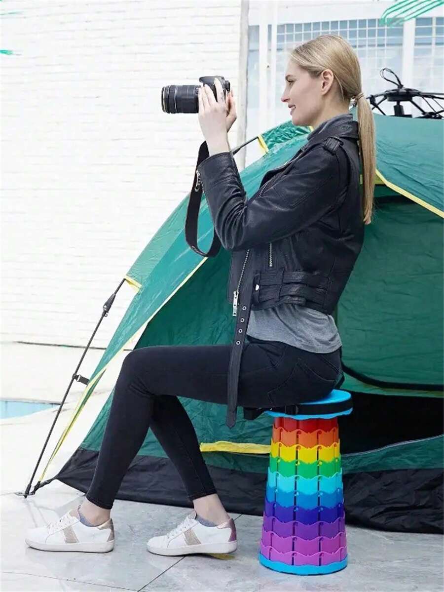 1pc Outdoor Folding Table And Chair Set, Suitable For Outdoor Activities, Queuing, Fishing, Picnics, Camping (Random Inner Pattern Color)