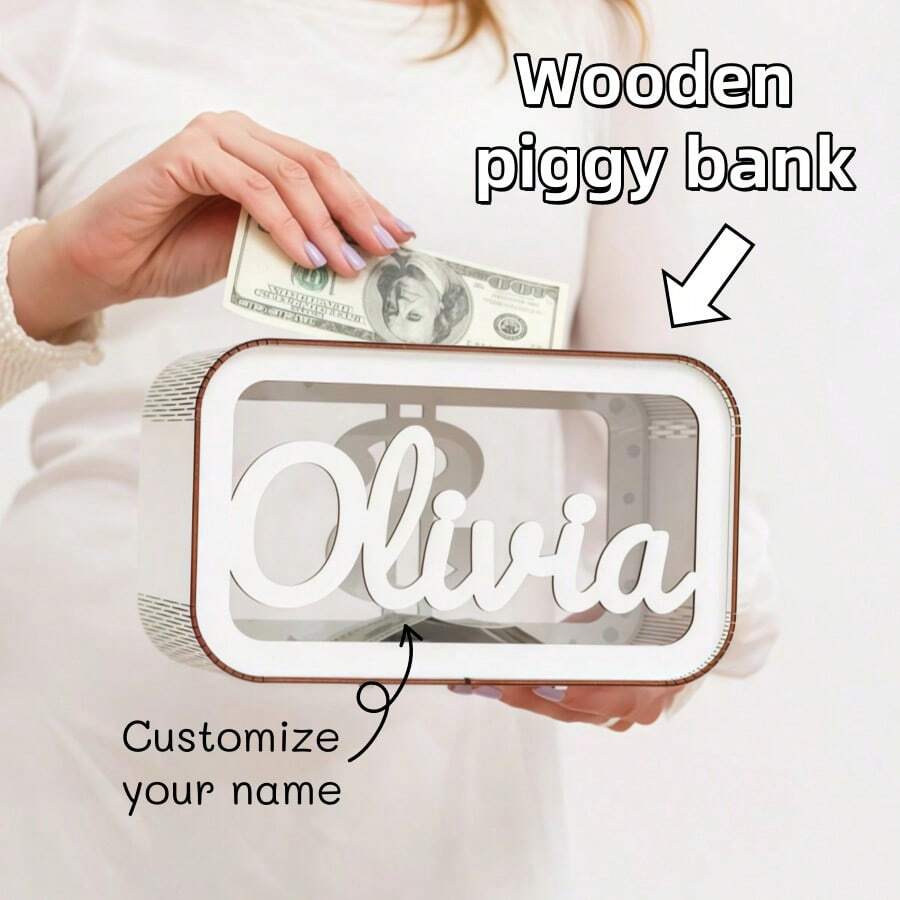 1pc Personalized Wooden Name Piggy Bank - Custom Cash Box, Perfect For Kids' Christmas Gifts, Birthday Gift Ideas, Gift For Her, Ideal For Easter, Back To School, And Special Occasions