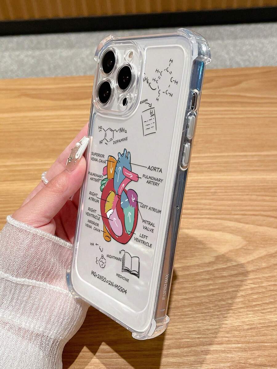 1pc Transparent Personalized Fashion Thickened Four Corners Anti-Fall Organ Print Phone Case, Compatible With Apple And Compatible With Samsung Series.