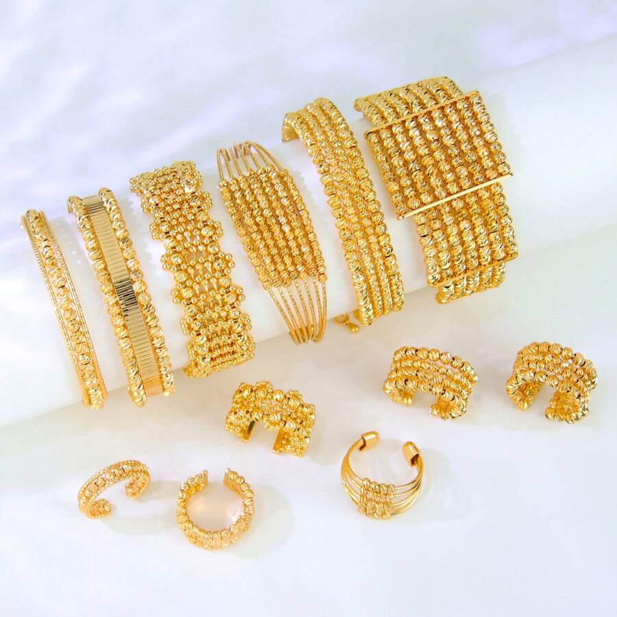 24K Gold Plated Luxury Dubai Style Bangle & Ring Set, Islamic Saudi Arabia Design Jewelry For Women, Wedding Party