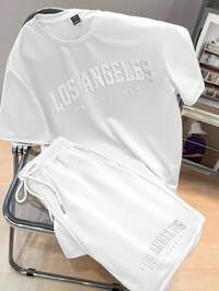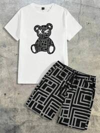 BRENVORMen's Summer Short Sleeve T-Shirt And Shorts Set, Personalized Letter Print Pattern, Fashion Casual Outfits With Pocket, Drawstring Waistband Pants, 2 Pieces Set Suitable For Running, Golf, Fishing, Basketball, Camping, Gym, Swimming And Beach, Great Gift For Husband Or Boyfriend