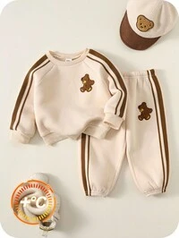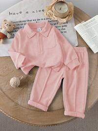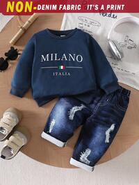 Pipplin2pcs Set, Casual, Cute, Baby Boy Clothes, Infant Bodysuit, Baby Autumn/Winter Outfit, Soft & Comfortable, Letter Print Hoodie Top And Solid Letter Print Pants Set, Suitable For Daily, Vacation, Party, Outdoor