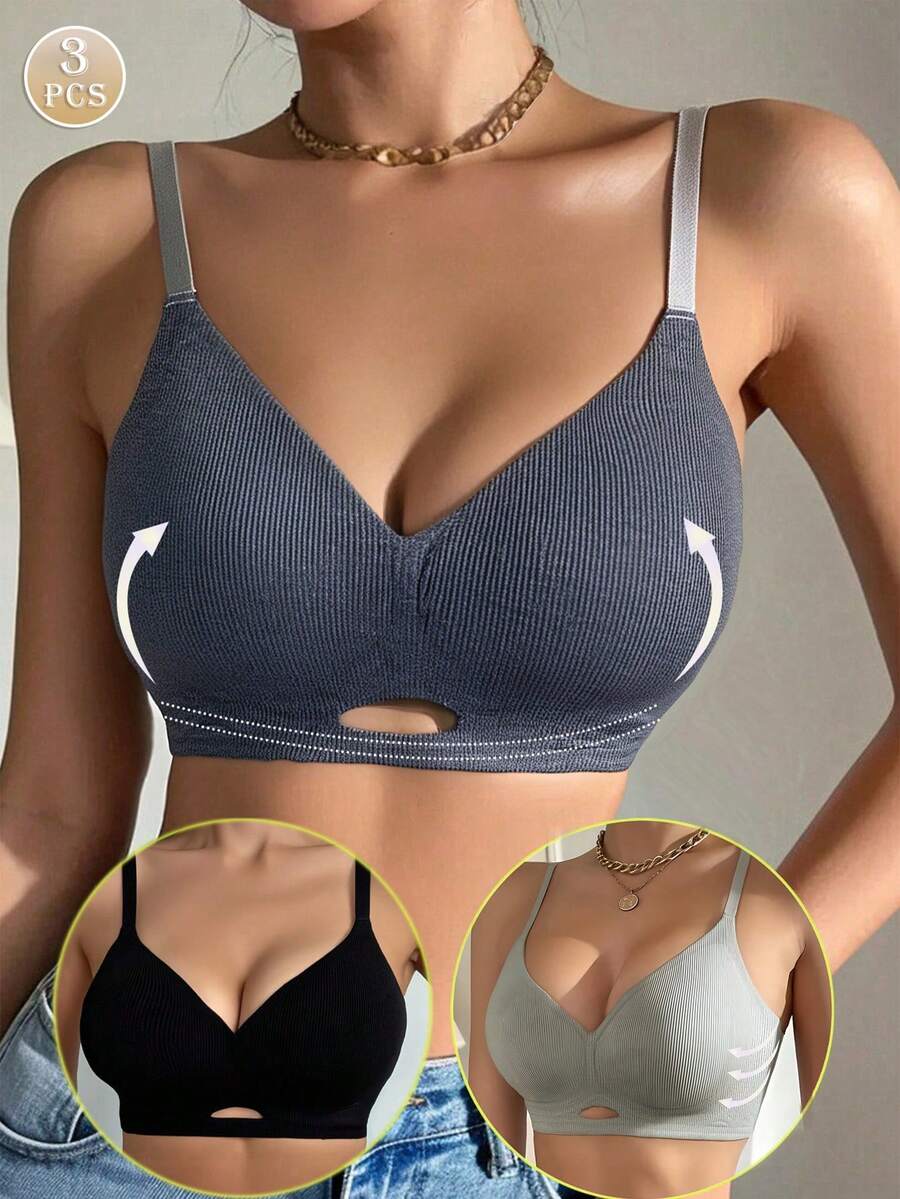 3pcs Women Casual Comfortable Bra, Simple Lift Up Gathering Brassiere, Skin-Friendly Breathable Fabric Ladies Underwear