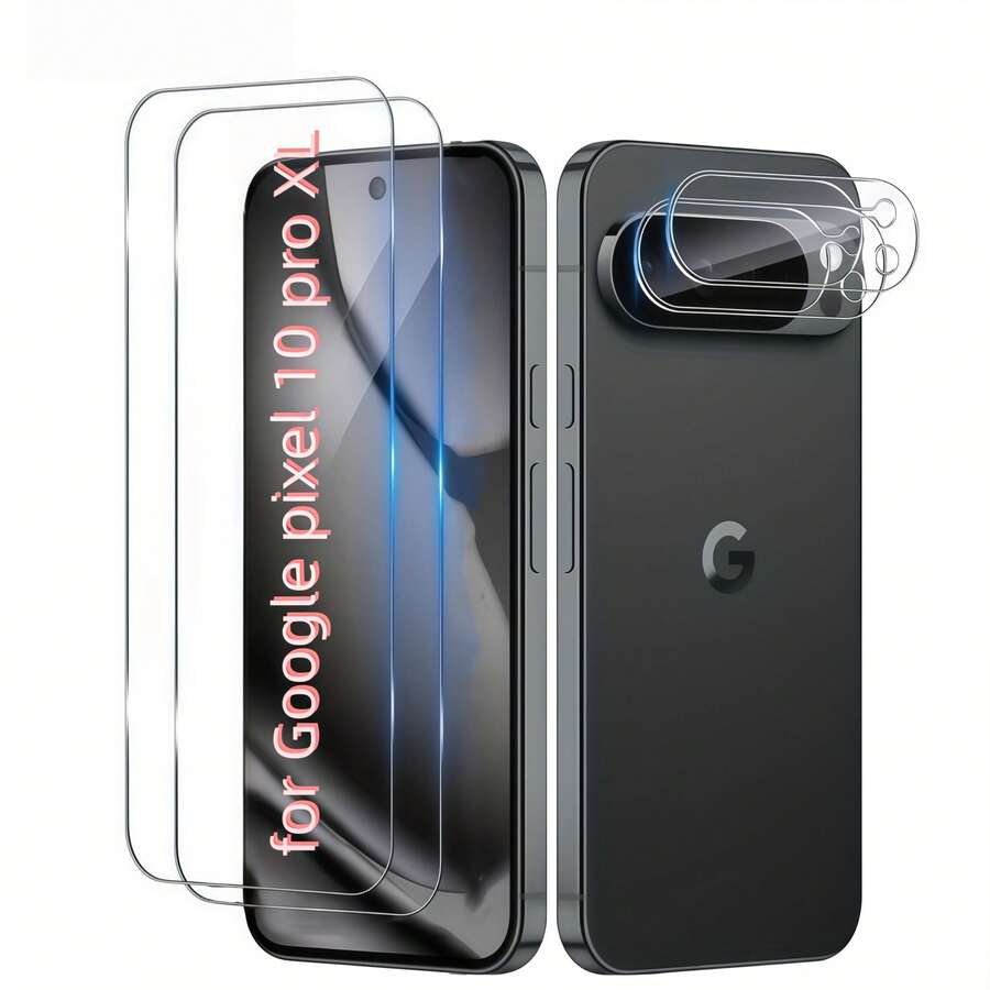 4pcs Set For Google Pixel 10/ Pixel 10 Pro/ Pixel 10 Pro XL/Pixel 10 Pro Fold, 2pcs Screen Tempered Glass Protector + 2pcs Camera Lens Tempered Glass Protector, Bubble-Free Protection, Fashionable Design, Perfect Fit, Durable Glass, High-Quality Protective Film, Phone Screen Protector, Tempered Glass Protector, Phone Accessories, With Unlocking Function, Phone Care Kit, Thin Design, Smartphone Protective Film, Antenna Film Blocking Board Lens Design