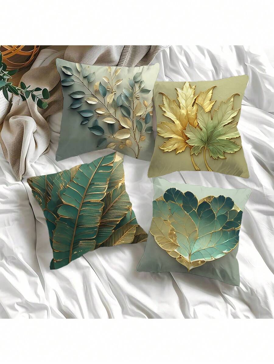 4pcs/Set New Arrival Hot-Selling Embossed Leaf Pattern Microfiber Short Plush Cushion Cover, Pillow Case, Sofa Throw Pillow