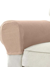 2pcs Khaki Solid Striped Sofa Armrest Covers, Classic Minimalist Design, High Elasticity Dust-Proof Sofa Armrest Protectors, Anti-Cat Claw, Removable And Washable, Suitable For Living Room, Study, Bedroom Sofa Armrests, Black, Light Gray, Beige (4 Clips Included) 2pcs Black PU Sofa Armrest Covers (With 4 Stickers Included), Classic Minimalist Design, Stretchy Dust-Proof Sofa Armrest Protectors, Anti-Cat Claw, Removable And Washable, Suitable For Living Room, Study, Bedroom Sofa Armrests, Brown, Wine Red, Light Gray