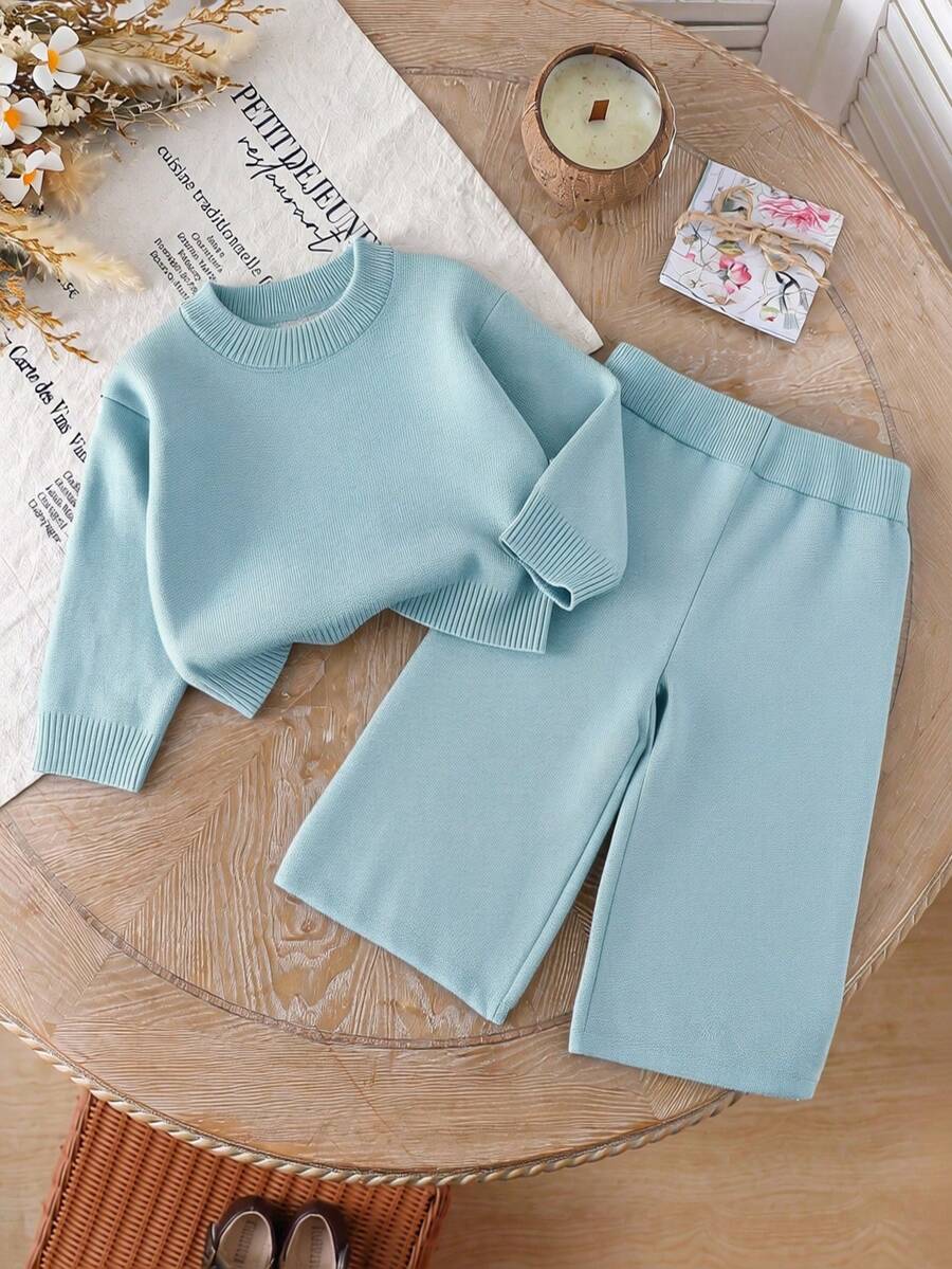 Baby Girl Fashionable Solid Color Long Sleeve Sweater And Pants Set, Suitable For Spring And Autumn Bamboo Baby Pajamas Light Blue Outfit 2 Years Old Girl Warm Baby Clothes Light Blue Matching Set Toddler Girl Blue Toddler Outfit Autumn And Winter Two Piece Suit Toddler Two Piece Sets Baby Girl Warm Sets Baby Two Piece Set Two Piece Winter Outfits For Toddler Girl