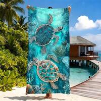 Home Textiles Bedding1pc Printed Beach Towel, Sea Turtle Pattern Swimwear Towel, Soft And Absorbent Microfiber Towel, Suitable For Bathroom, Swimming, Fitness, Yoga, Lightweight And Portable, Wind And Sun Protection, Ideal For Summer Travel And Vacation, Bathroom Decor. Recommended To Choose Regular Size Or Larger Size (Small Towel Size 35*75cm, Recommended 150cm Or Above).