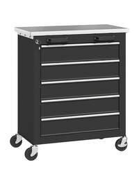 HOMCOM 5 Drawer Tool Cabinet, Rolling Tool Box, Steel Tool Cart, Silver+Black Tone