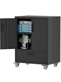 77cm Wall Mountable Metal Tool Cabinet With Lockable Door, 1 Adjustable Shelf And 1 Open Drawer - Ideal For Garage, Warehouse, Office (Assembly Required)
