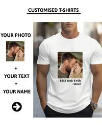 Plus Size Personalized Photo-Customized Men's T-Shirts For Spring And Summer. Customize With Your Own Photos (Group Photos, Lover/Family/Pet/Best Friend/Scenery), And Enter Your Text/Name/Message/Funny Text/Blessing. Men's Crew Neck Short-Sleeved Black T-Shirt. Perfect For Holiday Gifts, Valentine's Day/Birthday/Anniversary Photo Customization. A Great Gift For Him/Her. Spring/Summer Short-Sleeved T-Shirt.