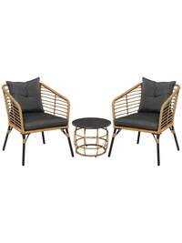 Outsunny 3 Piece Garden Furniture Set, Bistro Set With Coffee Table And 2 Chairs, Garden Seating Group With Cushions, Grey, For Patio And Balcony