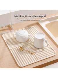 1pc - Large Silicone Dish Drying Mat, 15.75x11.81 Inches, Built-In Drain Design, Dish Rack & Space Saver, Easy To Clean, Black & Gray For Fridge, Stove, Sink (Modern Kitchen), Minimalist Design, Non-Slip Surface, Countertop Protector, Essential For Home Cooking 1pc Silicone Kitchen Sink Tray With Drainage Spout, Kitchen Faucet Sink Splash Guard, Silicone Faucet Water Catcher Mat, Sink Draining Pad Behind Faucet, Rubber Drying Mat, For Kitchen & Bathroom Countertop Protect, Kitchen Supplies, Bathroom Accessories, Kitchen Organizer, Household Kitchen & Bathroom Accessory ,Gift For My Mother,Silicone Mat,Mother's Day,Household Items,Kitchen Gadgets