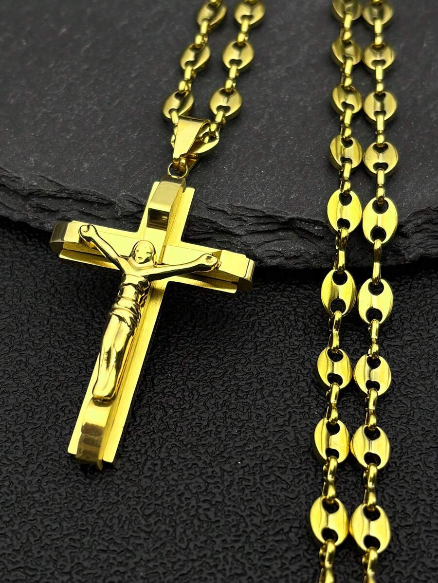 Jesus Cross Crucifix Pendant Necklace For Men Stainless Steel Gold Color Christian Coffee Bean Chain,Father's Day Gift, The Perfect Gift For Family And Friends