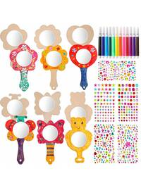 12 Pieces Of DIY White Wood Small Mirrors, Handicraft Set, Cartoon Animal Butterfly Heart Mirror Theme, Including 12 Wooden Board Mirrors, 1 Color Diamond Sticker, 12 Color Pens, DIY Handicraft Set Suitable For Children, Four-Season Wooden Handicraft Supplies Set, Halloween, Christmas, Birthday Gifts 5pcs/Set Mini Stretched Canvas, Palette, Brush, Easel, 6 Colors Paint, Wooden Easel, Art Primed Canvas, Suitable For Painting, Acrylic Pouring, Oil And Wet Art Media, DIY Miniature House Decor, Christmas Gift, Easter Gift, Mother's Day Gift, Graduation Gift