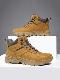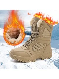 CangMing Official StoreWinter Thick Plush Lined Men's Snow Boots, High-Quality Anti Slip Men's Hiking Boots, 2025 New Plus Size Shoes, Durable Anti Slip Hiking Shoes, Combat Training Boots, High Top Men's Autumn And Winter Boots, Men's Outdoor Hiking Shoes, Sports And Leisure Shoes, Long Boots, Black Boots, Gray Boots, Sand Boots, Brown Boots, Men's Cycling Boots, Suitable For Cold Weather In Autumn And Winter, Sizes 39-47 (Irregular Pattern)