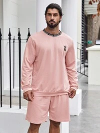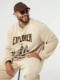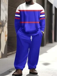 Manfinity VCAYManfinity Homme 1 Set Men Plus Sweatshirt Suit, Pullover Sweatshirt And Sweatpants Combo, Contrast Color Design, Graphic Print, Polo Collar, Half Zip Neckline, Elastic Waist Pants, Casual Everyday Wear, Commute, Back To School, Gift For Boyfriend/Husband, Fall Clothes