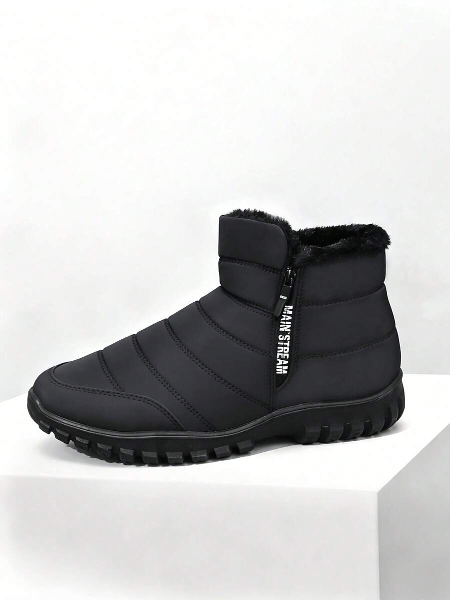Men's Snow Boots, Black Outdoor Sports Boots With Side Zipper, Non-Slip Fleece Lining, Winter Shoes. Valentine's Day Gift For Men, Creative Gift For Men.