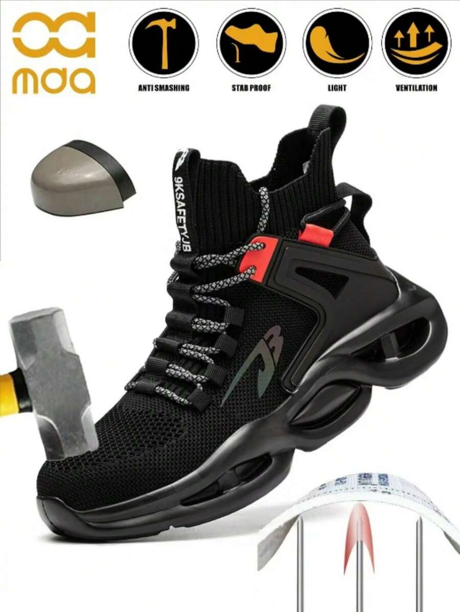 Men's Work Safety Shoes, High-Top Lace-Up, Sturdy Steel Toe Cap, Anti-Crush, Anti-Puncture, Anti-Skid, Breathable, Lightweight, Industrial Construction Outdoor Work Safety Boots, Suitable For All Seasons
