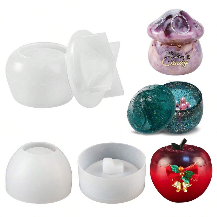 Mushroom House & Apple Jar Resin Silicone Mold With Lid Epoxy Resin Casting Mold For DIY Candle Jars, Jewelry Storage Box, Home Decor, Home Decor Essentials | Playful Design | Durable Silicone