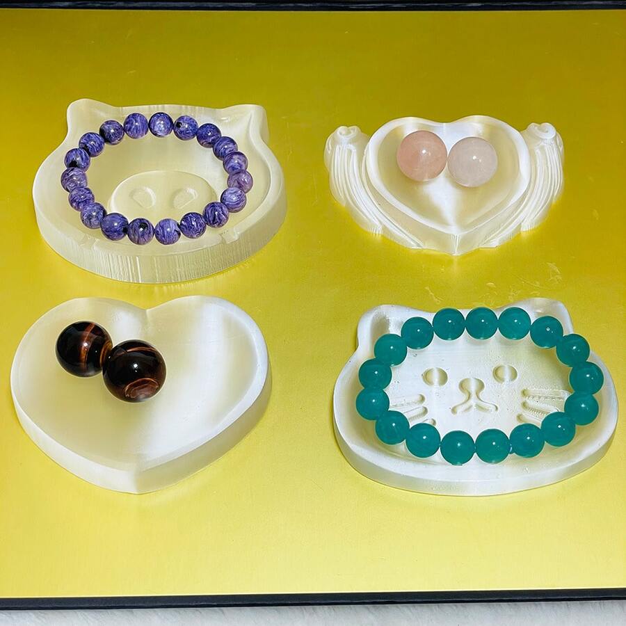 Natural Selenite Charging Plate, Selenite Bowl, Heart Bowl, Heart With Angel Wing, For Gift, Home Decoration, Crystal Degaussing, Jewelry Demagnetization.