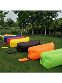 1pc Inflatable Slouchy Sofa, Outdoor Camping Quick Inflate Couch, Music Festival Slouchy Bed, Tropical Leaf Pattern Design, Durable Waterproof Fabric, Quick Inflation, Suitable For Outdoor Camping, Travel, Beach, Lawn, Garden, Music Festival, Picnic And More. Outdoor Inflatable Single Person Slouchy Sofa, Quick Inflate Slouchy Sleeping Bag, Camping Equipment, Camping Essentials Inflatable Sofa With Pillow - Travel Air Chair, Camping Lounger, Portable Inflatable Couch, Portable Air Lounger For Camping, Beach & Outdoor Relaxing; Lightweight Foldable Air Mattress Chair, Built-In Pillow And Back Support,Easy-Deflate Compact Carry Bag For Park, Camping, Hiking, Beach Lounging, Poolside, Picnics, Rvs, Music Festivals, Backyard & Travel