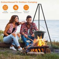 10L Goulash Kettle With Tripod, Tripod Frame With Chain Height Adjustment, Telescopic Tripod With Ground Spikes