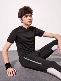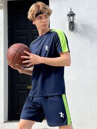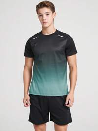 OntempoSHEIN Teen Boys' Black, Grey & White Gradient Sports Letter Colorblock Round Neck T-Shirt, Casual Sportswear, Comfortable & Fashionable, Versatile For Daily Wear, School, Outings, Outdoor Sports Like Basketball, Football, Fitness, Suitable For Summer & Spring