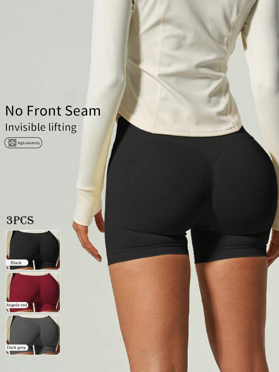 UONNOU 3-Pieces Set Of Women's Sports Shaping Shorts: Peach Hip Lifting, Waist Control, Three Color Combination, Suitable For Outdoor Sports, Ball Sports, Gym, Yoga Light Sports, Exercise Running, Casual Daily Life, Commuting On The Street, All Season Styles
