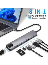 Hongwin Digital Store1pc 11-In-1 USB Hub, USB3.0 Computer Adapter Splitter, USB Charger, Network Port, Power Adapter, 5V 0.5A Charging Station, With SD/TF Card Reader, Type-C 3.1, PD 2.0/3.0 Fast Charging, Compatible With Laptops, Pro, IMac, IPad Pro And Other USB-C Devices