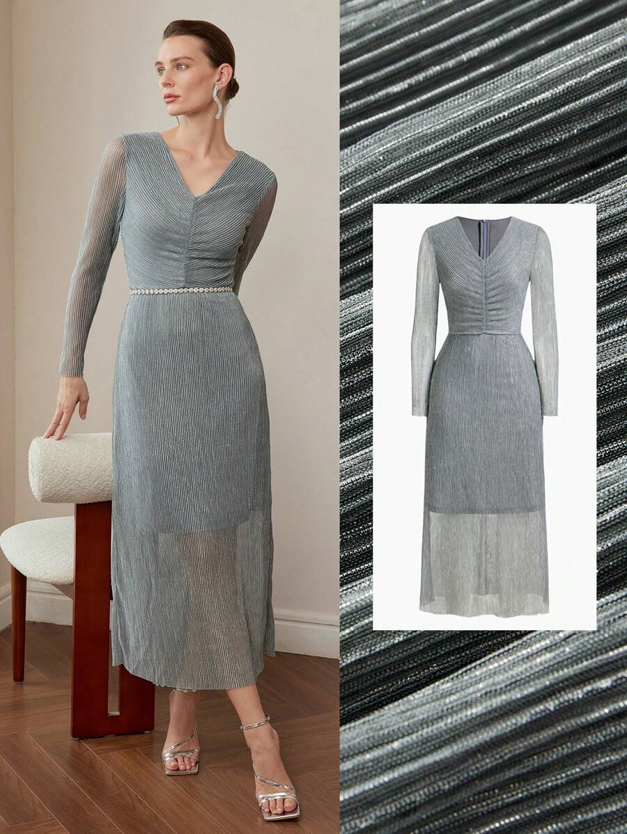 MOTF PREMIUM V-NECK RUCHED FRONT PLISSE DRESS WITHOUT CHAIN BELT