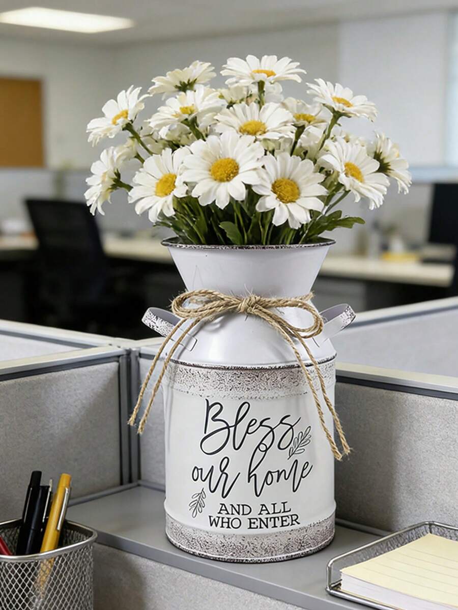 Vintage Iron And Hemp Rope Tie, Faded Purple Edging With "Bless Our Home" Blessing Slogan, Radiates A Gentle, Healing Ambiance. Can Be Used As A Vase For Dried Flowers Or A Storage Jar, Suitable For Light French, Cozy Decor In Entryways And On Desktops, Adds A Sense Of Ceremony To Home Furnishings.