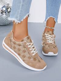 Women's White Casual Sneakers, Low-Top, Lightweight, Non-Slip, Wear-Resistant, Low Heel, Round Toe, Breathable, Lace-Up, Suitable For Outdoor Sports, Spring/Autumn